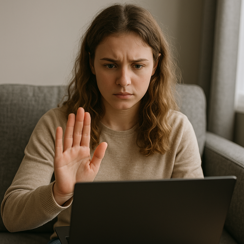 Estabeleça limites claros sobre quais tópicos você discute com estranhos online e não negocie esses limites mesmo que se sinta pressionado ou desconfortável. Se alguém pede que você faça algo que viola seus princípios, como compartilhar fotos íntimas ou fazer transferências bancárias, a resposta correta é sempre “não”. Você não deve se sentir obrigado a explicar suas razões ou justificar sua recusa.
